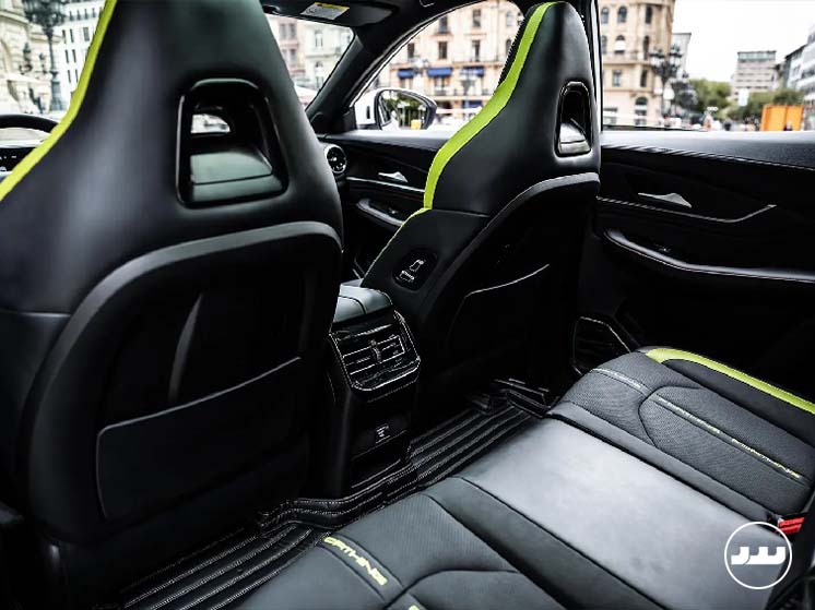 طراحی داخلی | کابین مدرن با تریم سبز و صندلیهای اسپرت